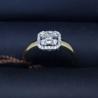 14krt geel-/witgouden ring met laboratorium briljant 0,558 ct. vs1-d