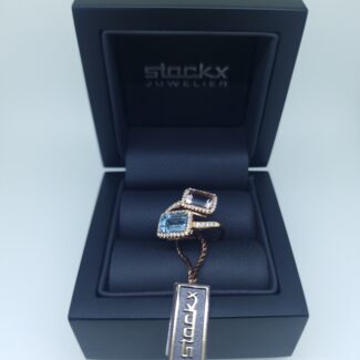 18krt rose gouden damesring briljant tot 0,29ct vs/h 1 Aquamarijn 1 Morganiet