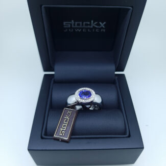 14krt witgouden ring met tanzaniet en briljanten tot. 0,10 ct. si-h