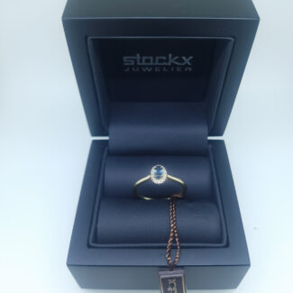 14krt geelgouden ring met london blue topaas en briljant tot. 0,10 ct. si-h