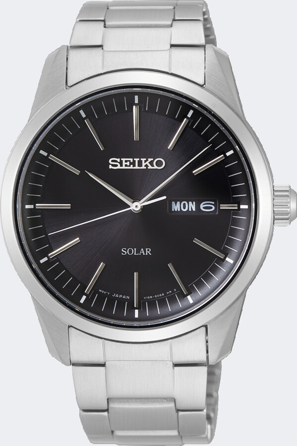Het Seiko kaliber V158 is een Solar horloge met dag-datumweergave. Seiko Solar maakt gebruik van een ultra-efficiënte Solar cel die in staat is om uit alle soorten licht, dus niet alleen zonlicht, energie te creëren. Deze energie wordt opgeslagen in een zeer kleine oplaadbare batterij die vele malen langer meegaat dan conventionele batterijen. Het uurwerk wordt beschermd tegen overladen. Dit maakt het horloge vrijwel onderhoudsvrij. Indien volledig opgeladen heeft kaliber V158 een energiereserve van 10 maanden. Mocht er energietekort dreigen, geeft het horloge een waarschuwing door de secondewijzer in stappen van 2 seconden te laten lopen in plaats van per 1 seconde. Het horloge beschikt over een handige instant start-functie. Dit houdt in dat wanneer het horloge geen energie meer heeft, en het weer aan voldoende (zon)licht wordt bloot gesteld, het horloge meteen start en het horloge laat de secondewijzer in stappen van 2 seconden lopen totdat het horloge weer over voldoende energie beschikt.
